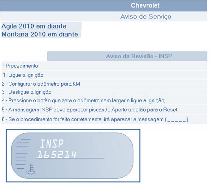 RESET DE MANUTENÇÃO E LUZES DE AVISO