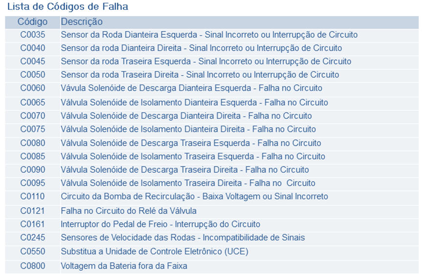 CÓDIGOS DE FALHAS