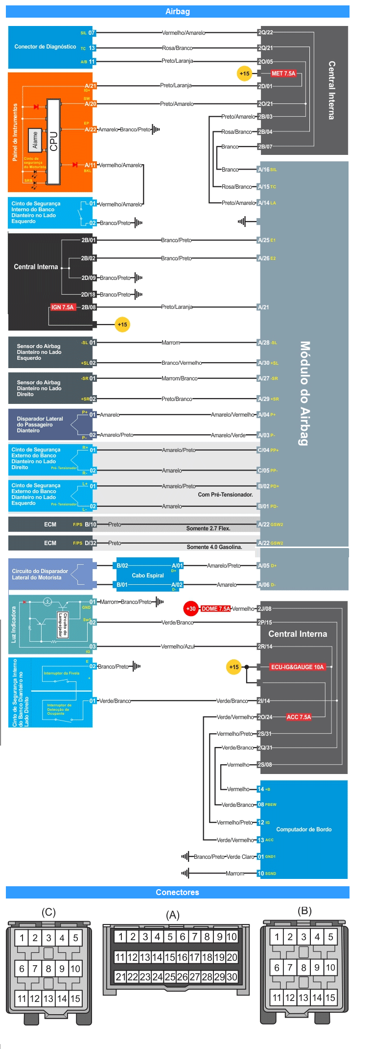 TOYOTA HILLUX 15 DIAGRAMA ELÉTRICO - SISTEMA AIR BAG