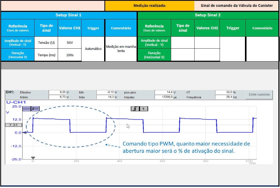 VÁLVULA DE PURGA DO CANISTER - SINAL DE ATIVAÇÃO