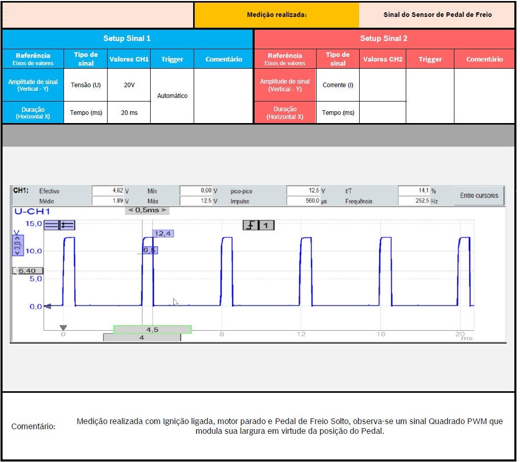 SENSOR DE FREIO - SINAL CARACTERÍSTICO