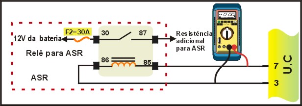 | Multiteste no modo Ohmimetro ligado ao terminal 85 e 86 checar a resistência que deverá ser de 50 a 100 W. |