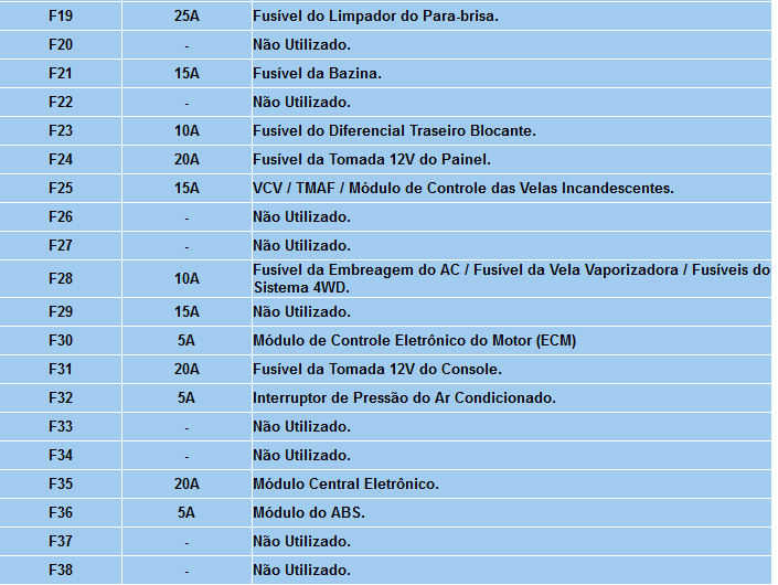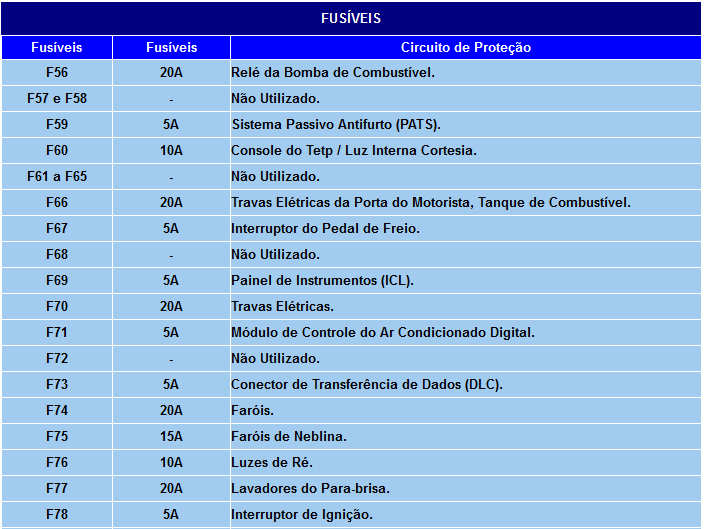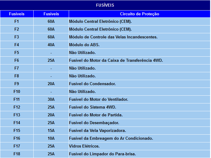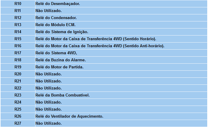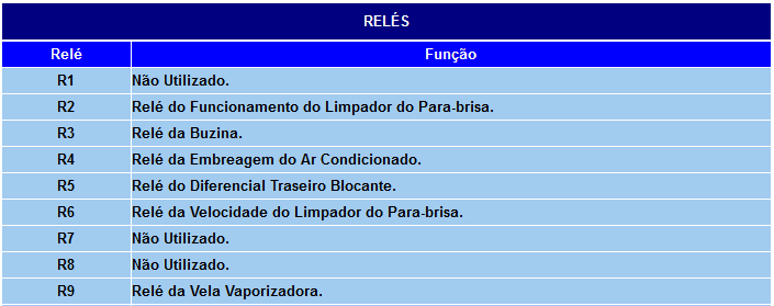 FUSÍVEIS E RELES DO SISTEMA