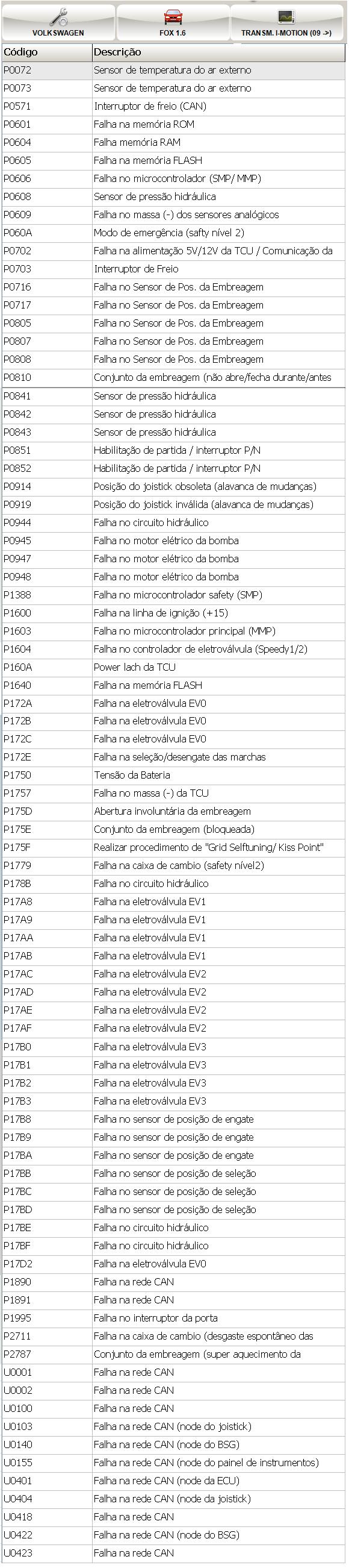 c�digo de falhas