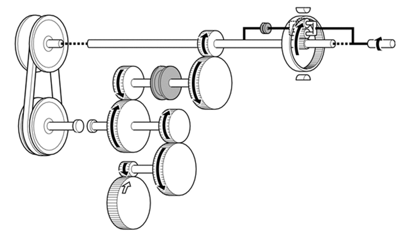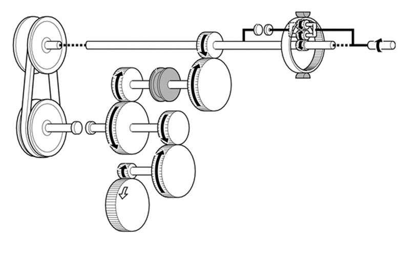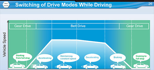 A principal inovação - engrenagem de lançamento: além da correia metálica entre as polias, um mecanismo de engrenagem é usado na partida, condução em baixas velocidades e ré.
