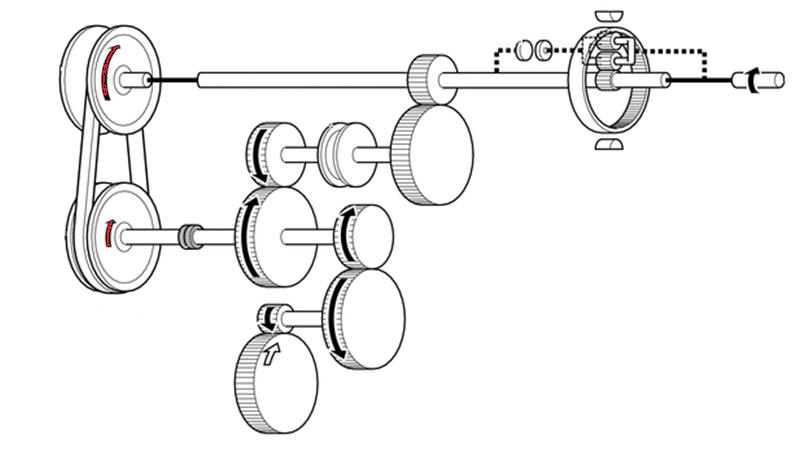 O diâmetro das polias reduziu significativamente, o ângulo da correia (polia) foi reduzido de 11° para 9°, resultando em maior velocidade de deslocamento.