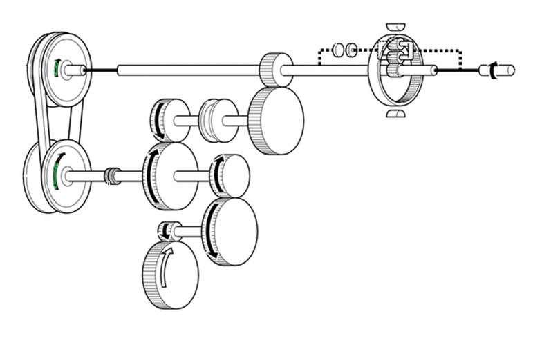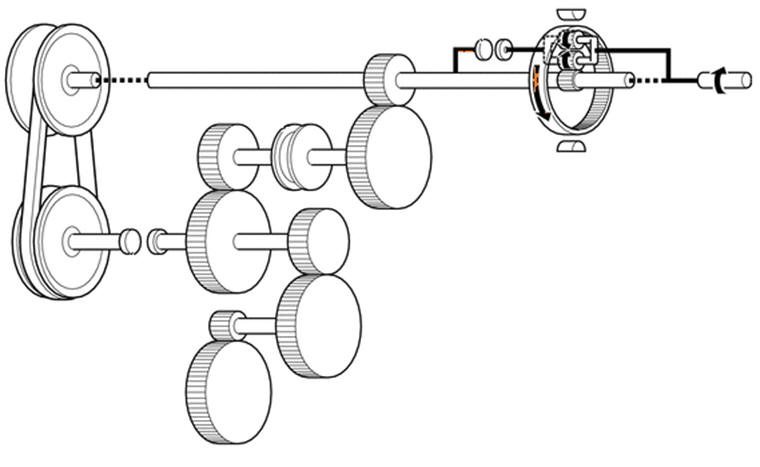 Assim, a engrenagem de lançamento substitui a correia nos modos mais difíceis: a posição extrema quando a correia dobrada opera ao longo do raio mínimo na área de contato mínimo com a polia de acionamento, e enquanto desliza, e partindo de uma parada total.