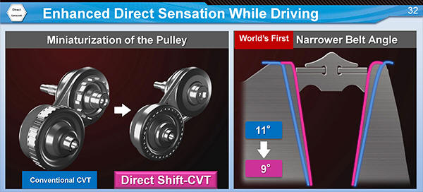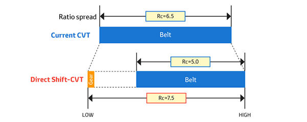 Formalmente, a faixa de relação da nova transmissão aumentou para 7,5 em vez de 6-6,5, embora a faixa de relação do próprio variador, ao contrário, tenha diminuído para 5,0 - o que claramente beneficiou a correia.