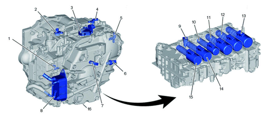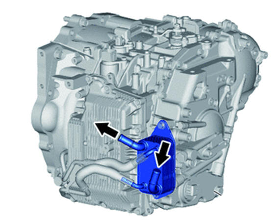 O aquecedor de fluido CVT (resfriador de óleo) usa o líquido de arrefecimento do motor para aquecer o fluido CVT rapidamente e mantê-lo dentro dos limites adequados. O radiador de óleo é instalado diretamente na transmissão.