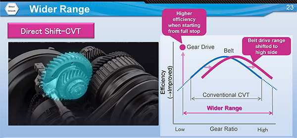 Às vezes você pode ouvir que a Toyota repete o conceito conhecido de Jatco CVT7. De fato, a diferença fundamental da solução Jatco é que um redutor planetário adicional é instalado em série com um variador de correia em funcionamento constante, enquanto a Aisin instalou um trem de engrenagens paralelo ao variador e funciona de forma alternada.