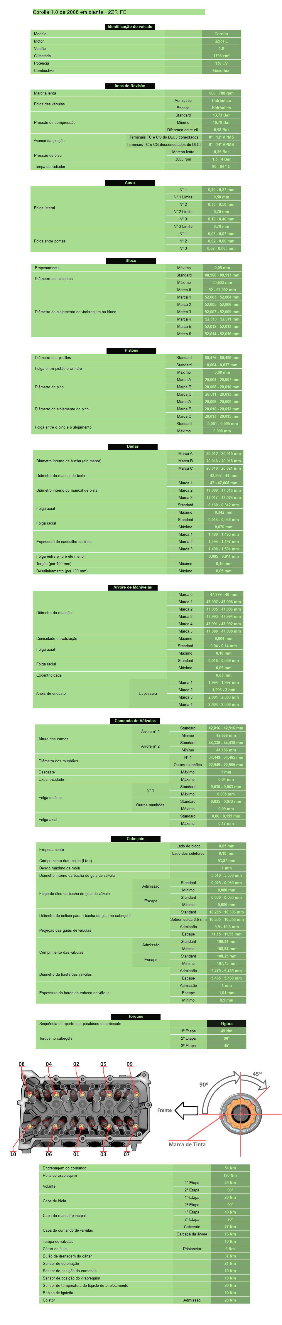 COROLLA 1.8 16V motor 1ZZ-FBE -VVT-i flex