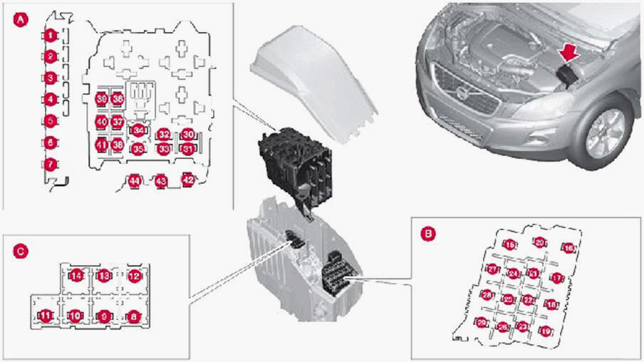 / caixa de fus�veis sob o porta-luvas |