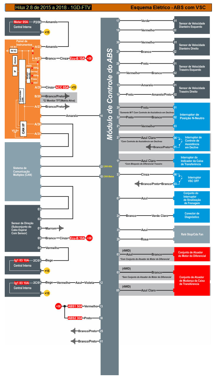 DIAGRAMA ELÉTRICO - FREIOS ABS E CONTROLE DE TRAÇÃO